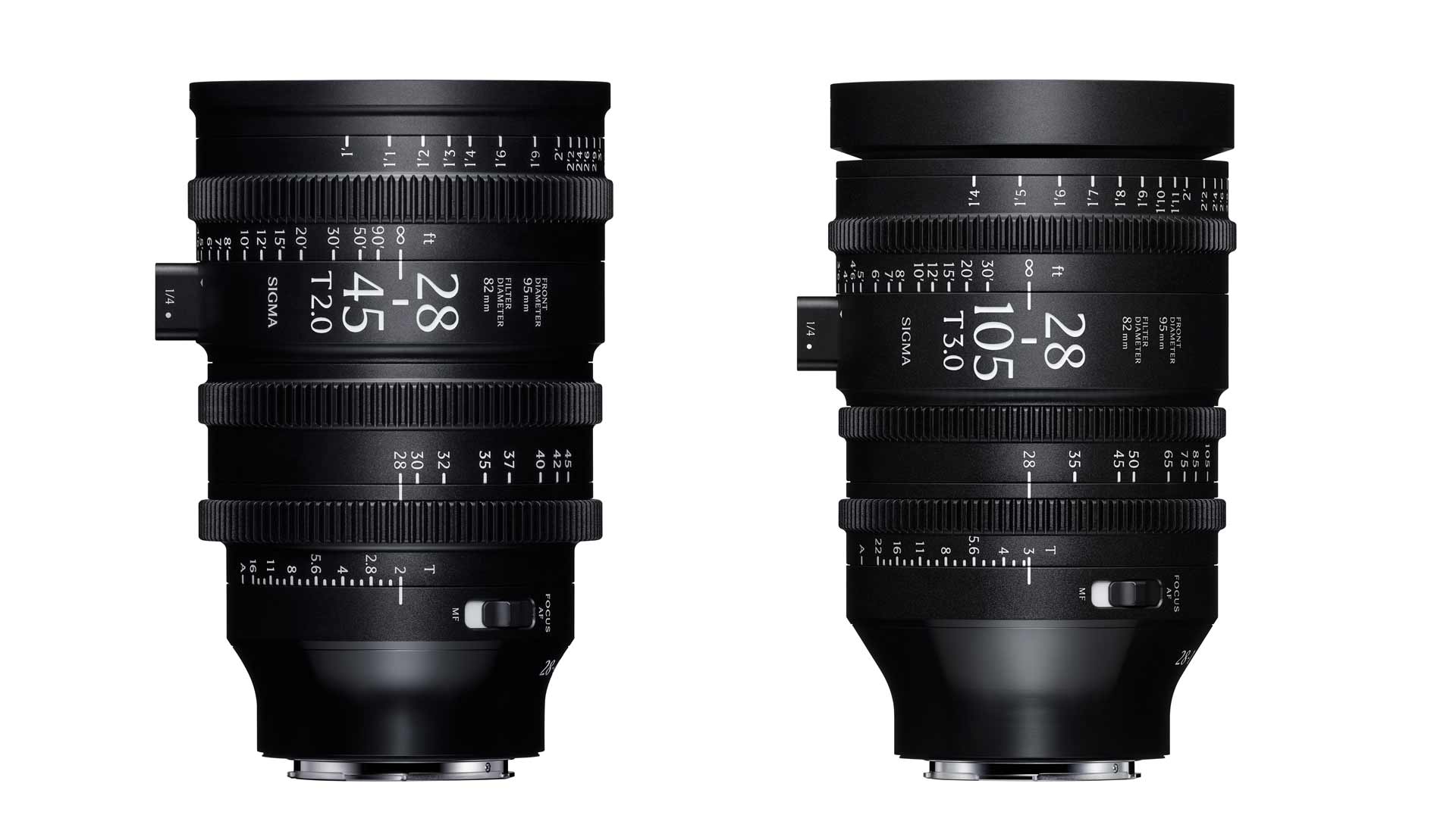 Die optischen Systeme der Objektive basieren auf den Designs der Sigma Art-Serie, konkret den Modellen Sigma 28-45mm F1.8 DG DN | Art (hier im Test) und Sigma 28-105mm F2.8 DG DN | Art. Die Objektive bieten eine Naheinstellgrenze von 0,3 m (28-45mm T2 FF) beziehungsweise 0,4 m (28-105mm T3 FF). Die mechanische Konstruktion ist auf die Anforderungen der Filmindustrie abgestimmt. Dazu gehören ein Fokusring mit begrenzter Drehung, Pitch-Gears mit 0.8M nach Industriestandard und ein klickfreier Blendenring. Der HLA-Linearmotor (High-Response Linear Actuator) sollen einen präzisen Fokuswechsel und einen nahezu geräuschlosen Betrieb ermöglichen. Der Frontdurchmesser beträgt bei beiden Modellen 95 mm, und die Länge liegt bei 151,3 mm (28-45mm T2 FF) beziehungsweise 157,9 mm (28-105mm T3 FF). Das Gewicht gibt Sigma noch nicht an. Beide Objektive verfügen über ein 82 Millimeter Frontfiltergewinde.