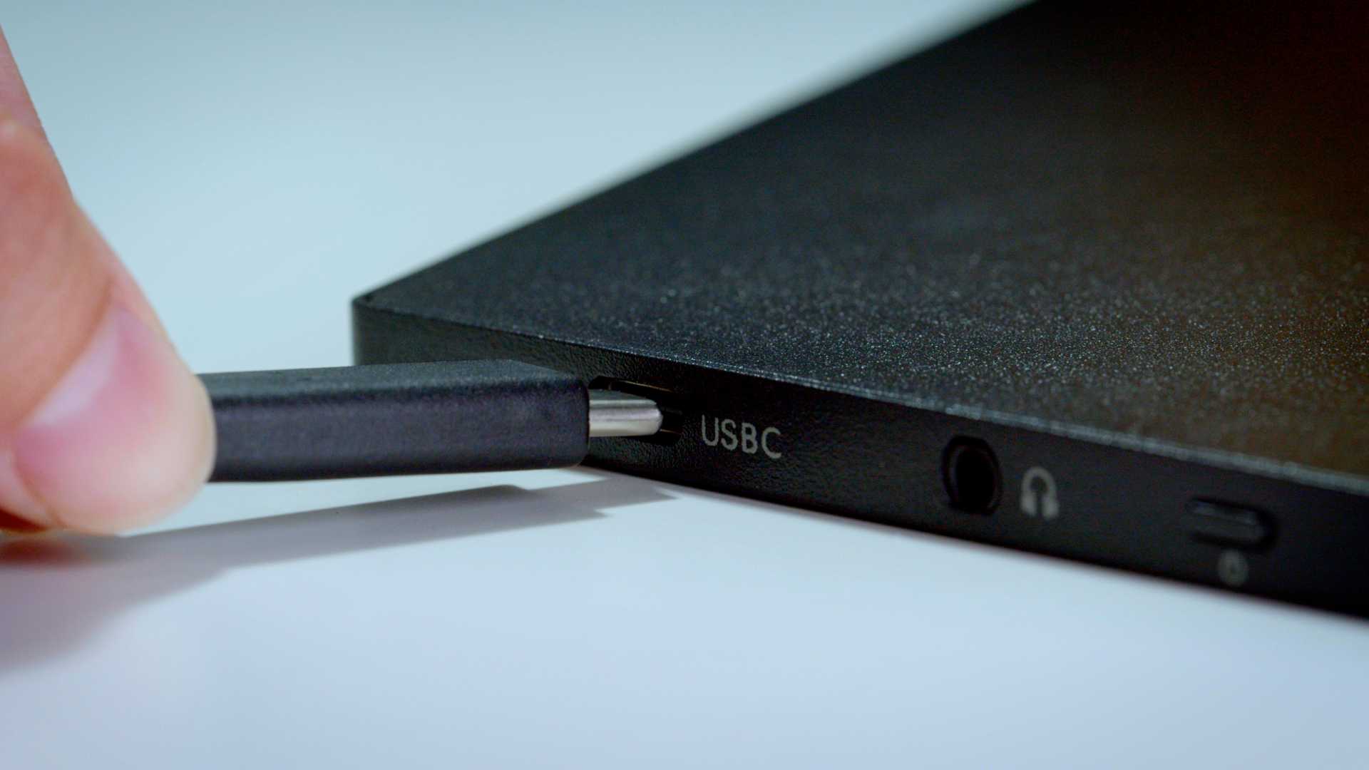 Der Philips 16B1P3302 kommuniziert via USB-C mit dem Laptop. Über den Audio-Ausgang kann man einen Kopfhörer anschließen.