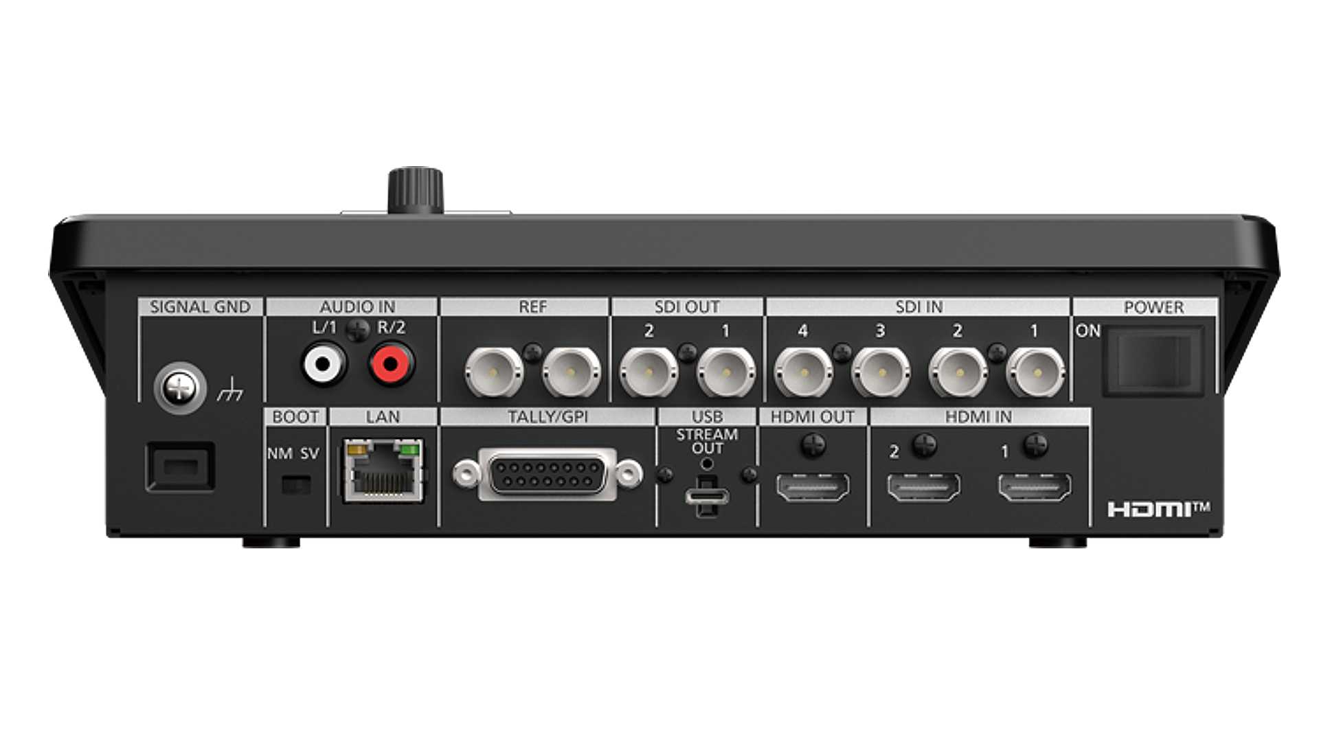 Der Panasonic AV-HSW10 bietet unter anderem Anschlüsse für viermal SDI-In sowie zweimal SDI-Out.