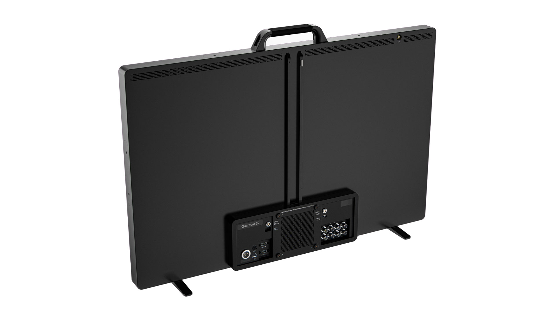 Der Referenzmonitor Quantum 32 nutzt ein Samsung Display mit Quantum Dot OLED-Display-Technologie, die eine höhere Leuchtdichte und Farbgleichmäßigkeit liefert und einen weiten Betrachtungswinkel bieten soll. Die von Samsung Display entwickelten QD-OLEDs leiten energiereiches Licht von blauen organischen LEDs (OLED) in eine Schicht aus gedruckten roten und grünen Quantenpunkten. Die Quantenpunkte sind für maximale Lichtdurchlässigkeit optimiert; Wenn die Quantenpunkt-Subpixel durch blaues Licht angeregt werden, werden sie photolumineszierend und emittieren sehr reines rotes und grünes Licht, während das blaue Licht direkt durchgelassen wird. Der Monitor liefert eine Auflösung von 3840 x 2160 Pixeln und 10-Bit Farbtiefe. Das Kontrastverhältnis gibt der Hersteller mit 1.500.000:1 und die Spitzenhelligkeit mit 1000nits an.