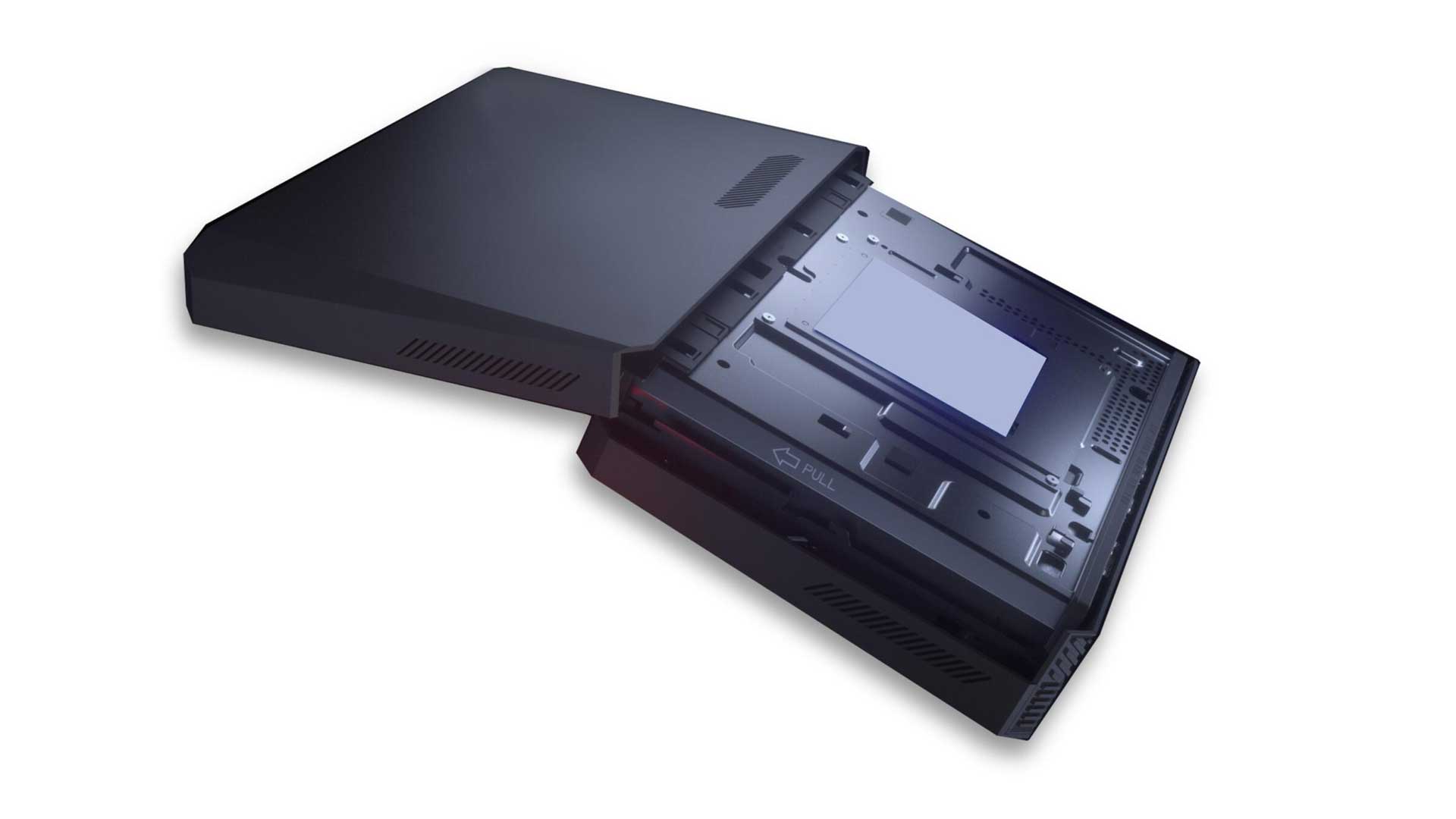 Beim kompakten Rechner lässt sich eine Seitenwand abnehmen. So lässt sich der Rechner an die Wand oder hinter einen Monitor montieren.