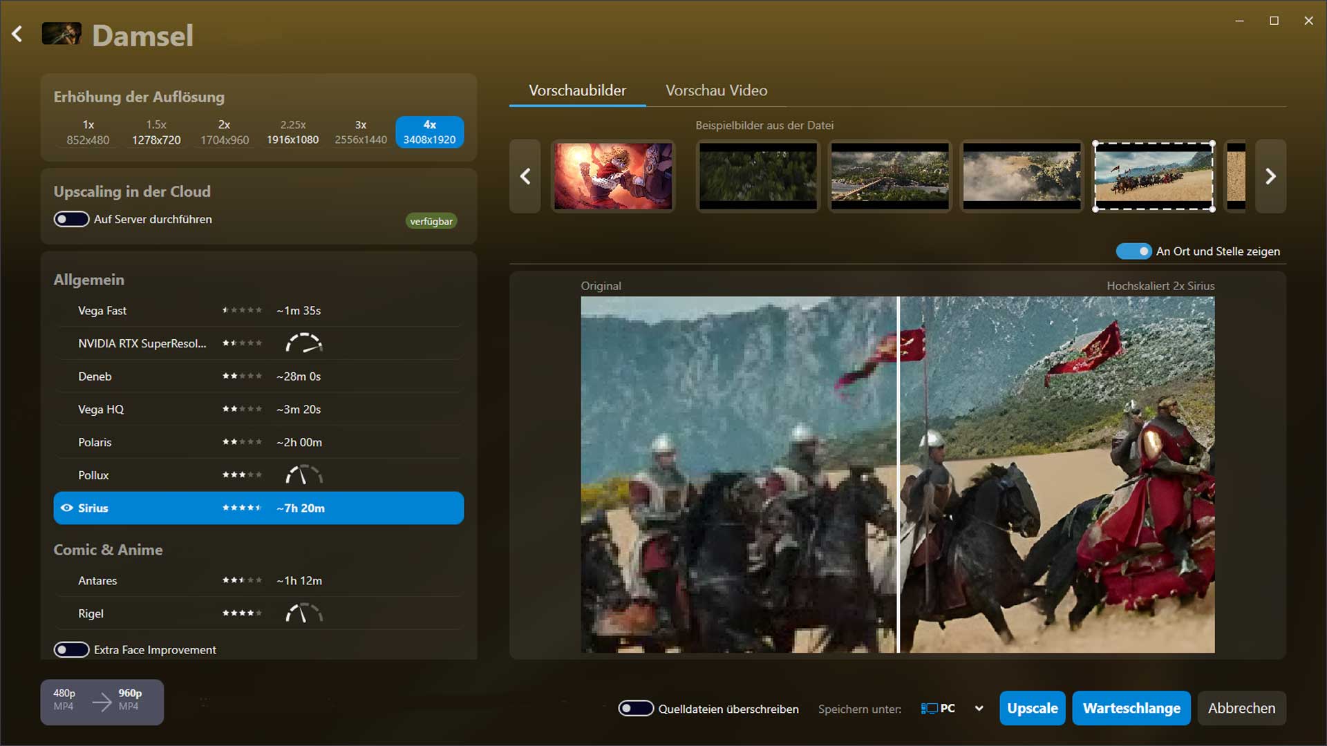 Audials soll die Videoqualität erheblich anheben und macht dies wahlweise in der Cloud, was die Rechenzeit reduzieren soll.