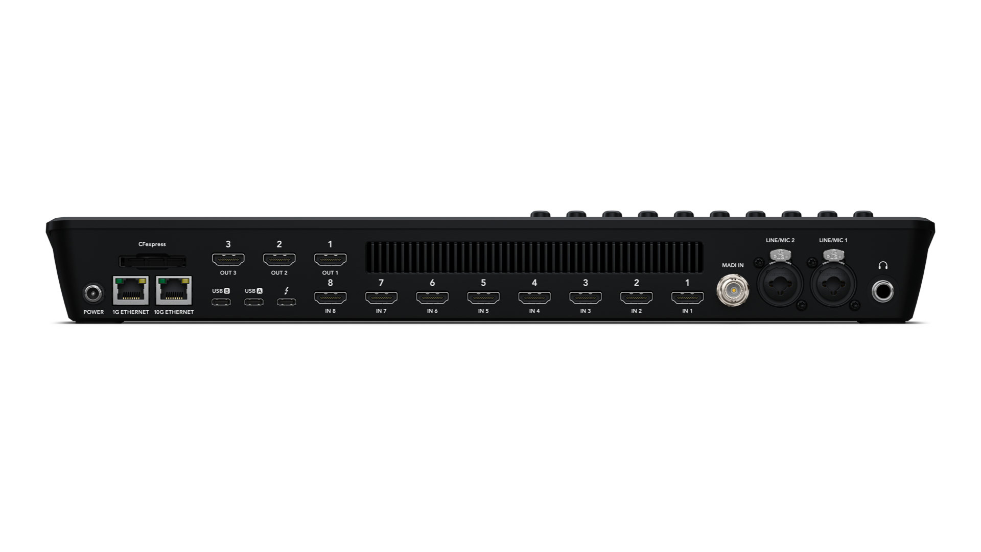 Eine Thunderbolt- und eine 10G-Ethernet-Buchse erlauben die Fernsteuerungen der Mischerfunktionen über ein Netzwerk.
