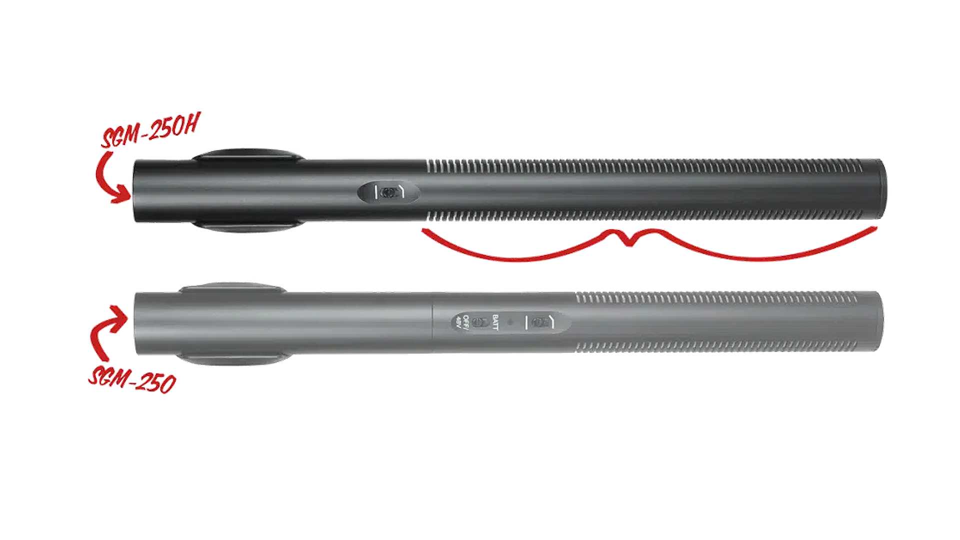 Gegenüber dem SGM-250 hat Azden beim SGM-250H das Interferenzrohr um rund 50 Prozent verlängert, was zu einer besseren Rauschunterdrückung beiträgt.
