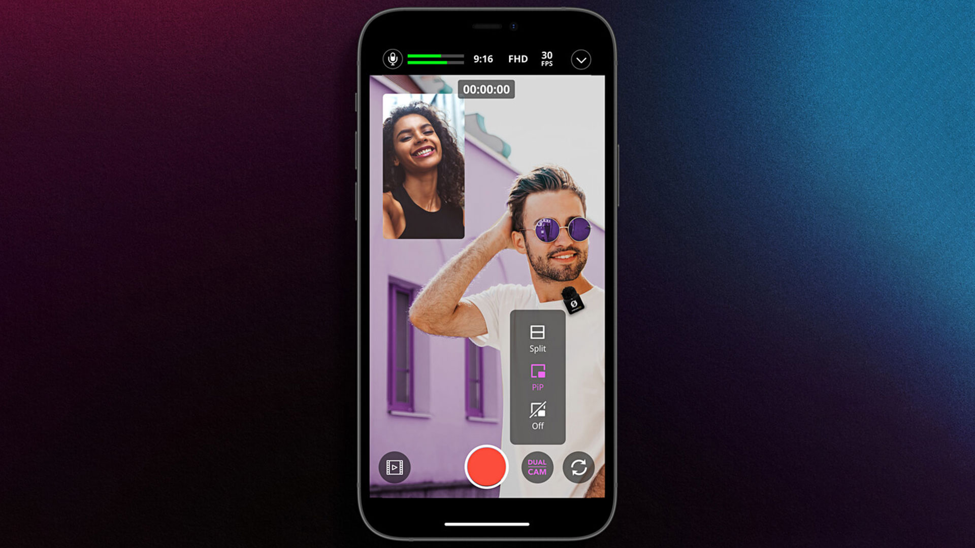 Die Røde Capture bietet unter anderem einen Zwei-Kamera-Modus mit dem man sich selbst mit der Selfie-Kamera und die Person vor der Kamera gleichzeitig aufnehmen kann.