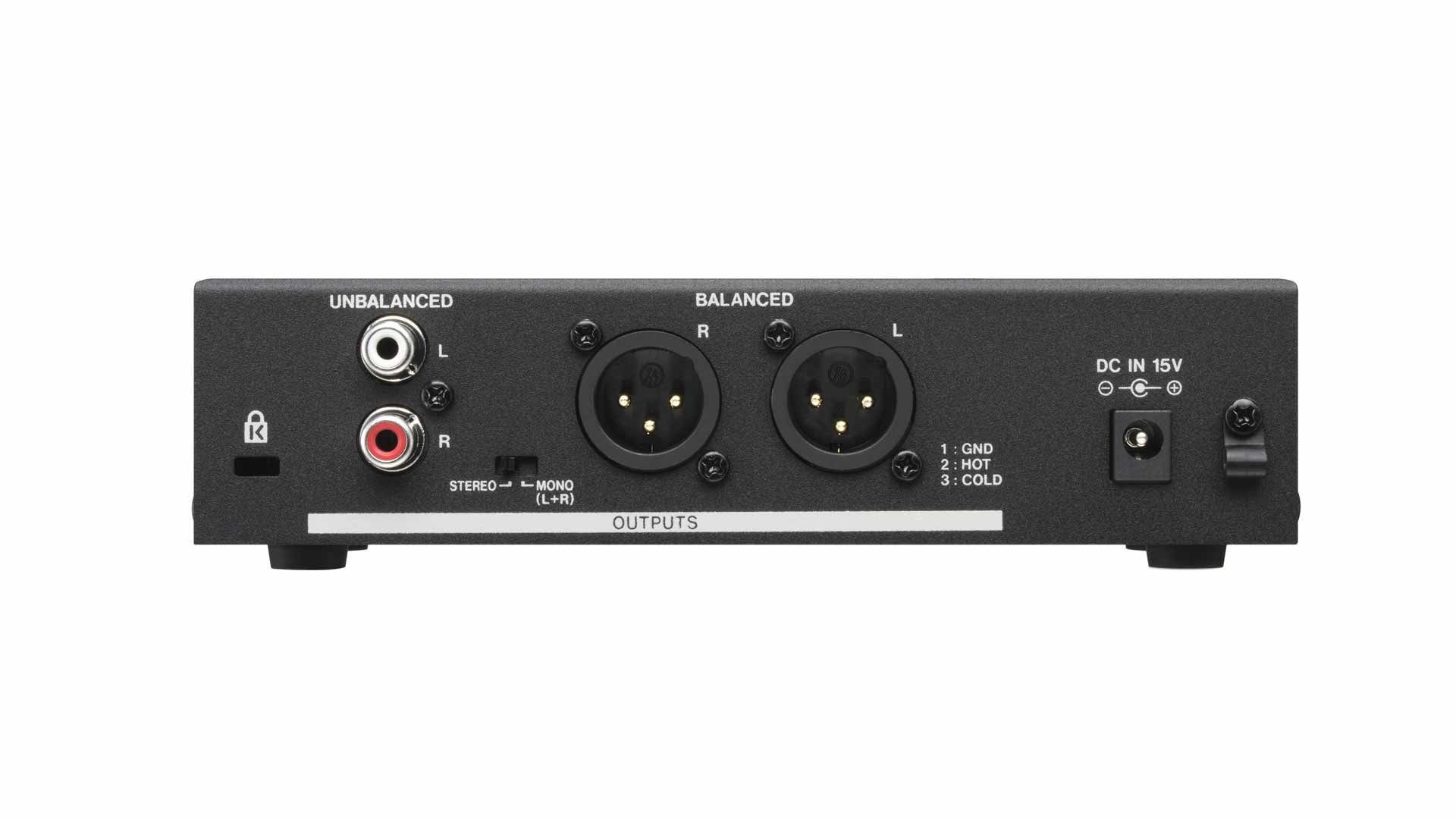 Mit seinen XLR-Ausgängen ist der Empfänger für das professionelle Umfeld gerüstet, bietet aber auch Cinch-Ausgänge und erlaubt die Ausgabe als Mono-Signal.