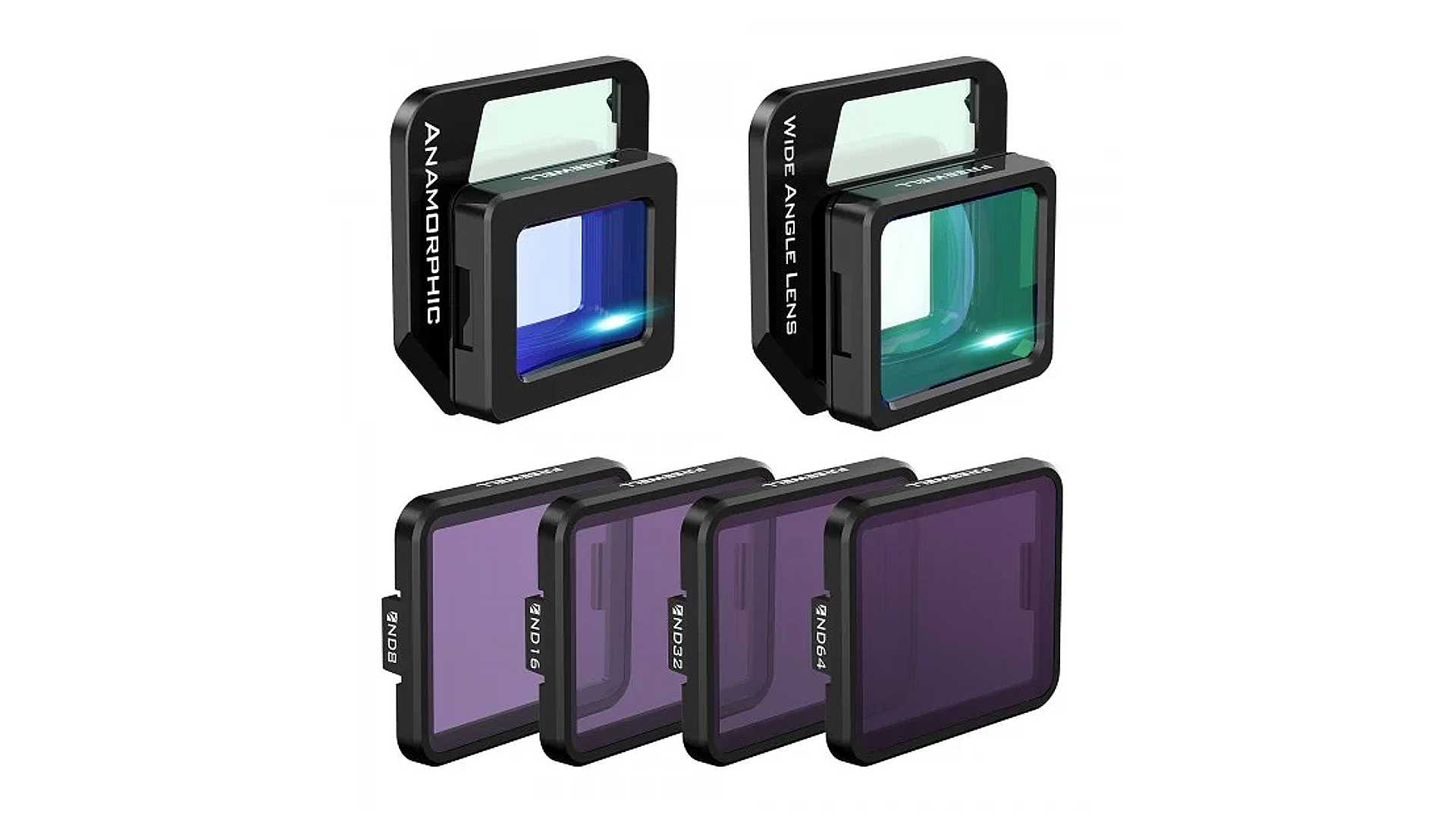 Mit den Objektiv-Aufsätzen kommen auch noch vier ND-Filter, die da wären: ND8, ND16, ND32 und ND64. Die Filter platziert man direkt vorne am Weitwinkel- oder Anamorphot-Objektiv. Die Objektive sind dann auch für die Befestigung der Filter Voraussetzung, man kann diese also nicht einfach so an der Kamera-Linse der Mavic 3 nutzen.