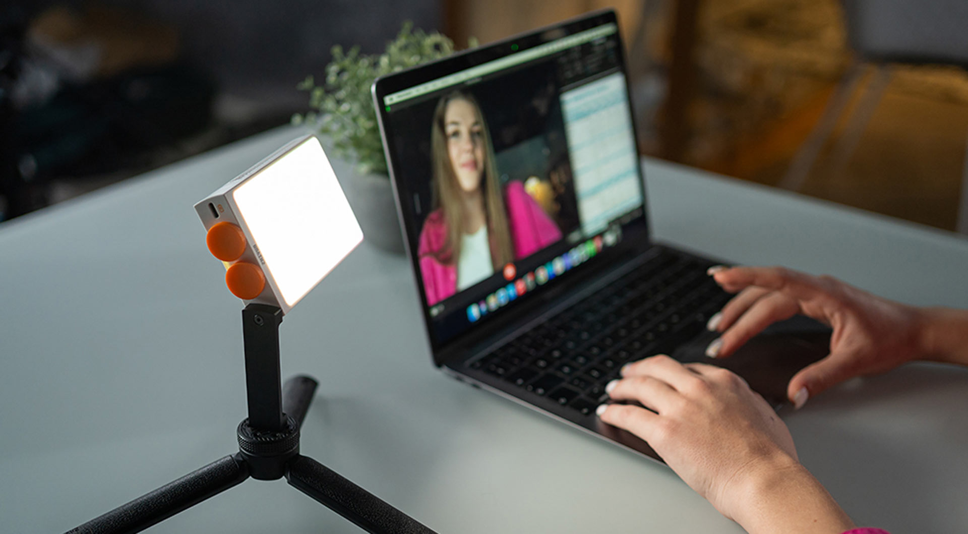 Das Aufhelllicht M40 soll nicht nur bei Videokonferenzen am Arbeitsplatz sondern in allen Filmsituationen unter schwachen Lichtbedingungen helfen.