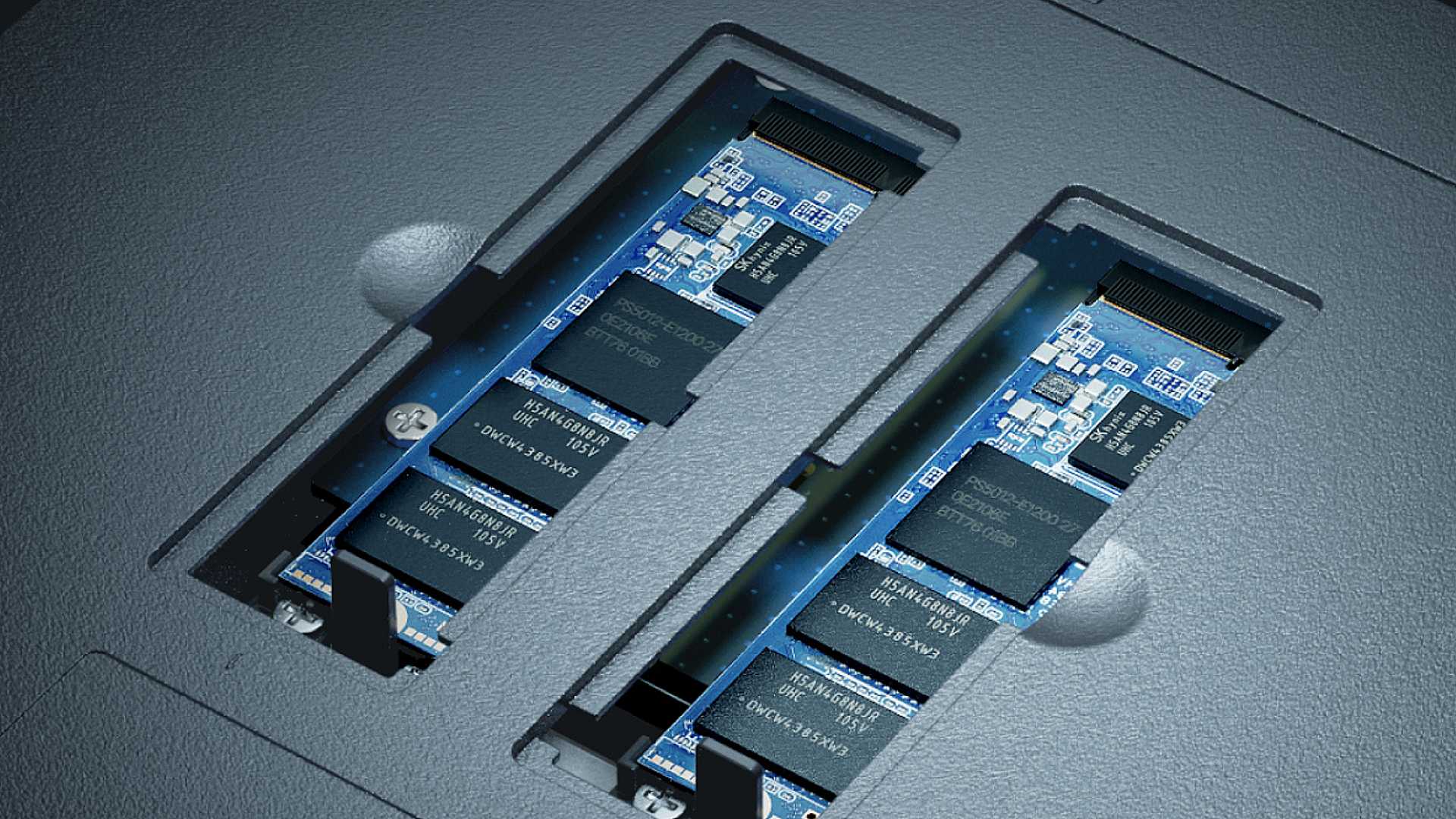 Die Synology DiskStation DS423+ bietet zusätzlich zu den vier HDD-Einschüben noch zwei SSD-Steckplätze für entsprechende NVMe-Speicher.