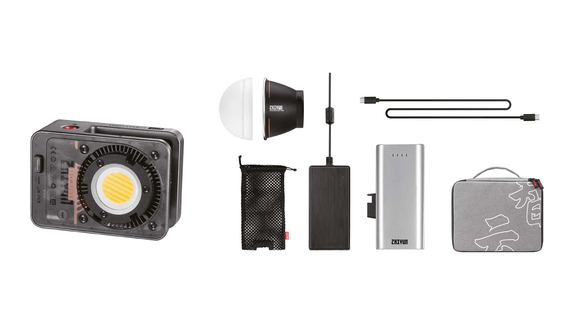 Zhiyun verspricht eine einfache Benutzeroberfläche dank der klassischen Zwei-Tasten-Bedienung mit einem praktischen Drehknopf für Farbtemperatur/Modus und einem für die Helligkeitseinstellung. Die Molus X60 Serie ist mit dem Zubehörsystem von Zhiyun kompatibel, zu denen neben Stromzubehör auch eine Reihe kompakter und tragbarer Lichtmodifikatoren gehören. Das Zubehör für den X60 umfasst eine kleine Diffusor-Kuppel, einen Reflektor, eine Softbox und eine Aufbewahrungstasche. Das ZY-Mount-Zubehörsystem ermöglicht zudem die Kompatibilität zu Bowens-Mount-Lichtmodifikatoren anderer Hersteller.
